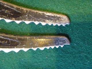 The two used picks above were new 2 short Chamonix mixed climbs earlier. Granite and a foot of new snow is like taking a grinder to a set of picks...any pick. No file used on these two and "good" by some of the standards I saw in Europe as "usable picks". Set is compared to a new Cascade Petzl pick in this picture . Trust me...picks in that condition really suck on ice. And now I ama beginning to understand why no one wants to bring a file on route. Why bother?